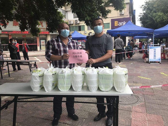10月28日中午,位于中信銀行門口和冰心公園內(nèi)二個(gè)航華社區(qū)核酸檢測(cè)點(diǎn)的工作人員收到了50份午餐和水果。