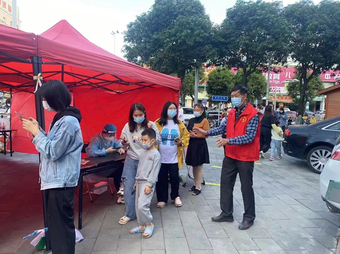 區(qū)疾控中心通知晚上6點(diǎn)至9點(diǎn)對(duì)漢庭酒店附近兩個(gè)社區(qū)居民進(jìn)行核酸檢測(cè)。防控疫情就是使命。我立刻回家穿上社區(qū)黨員志愿者紅馬甲,來(lái)到核酸檢測(cè)點(diǎn)。