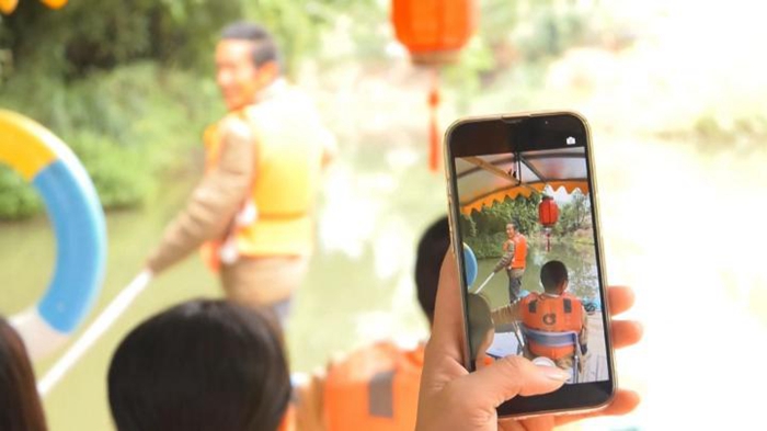 林上樹是村里的名人,除了日常撐竹排,他還將這些年村里的變化和村民的幸福生活,以山歌的形式唱給游客聽。黨的二十大召開后,老林把黨的二十大精神編成朗朗上口的山歌,與游客分享他的心得。據(jù)悉,這是半山村新時代文明實踐志愿者開展的又一項“鄉(xiāng)音傳‘黨音’黨的二十大精神宣講入人心”的宣傳形式。