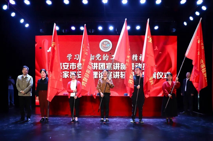 “全家福安”理論宣講輕騎兵等十支示范隊(duì)授旗。蒲允靜 攝