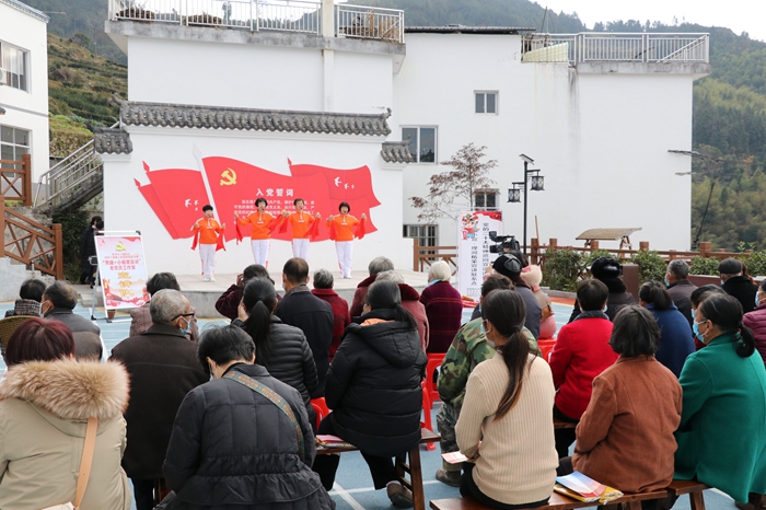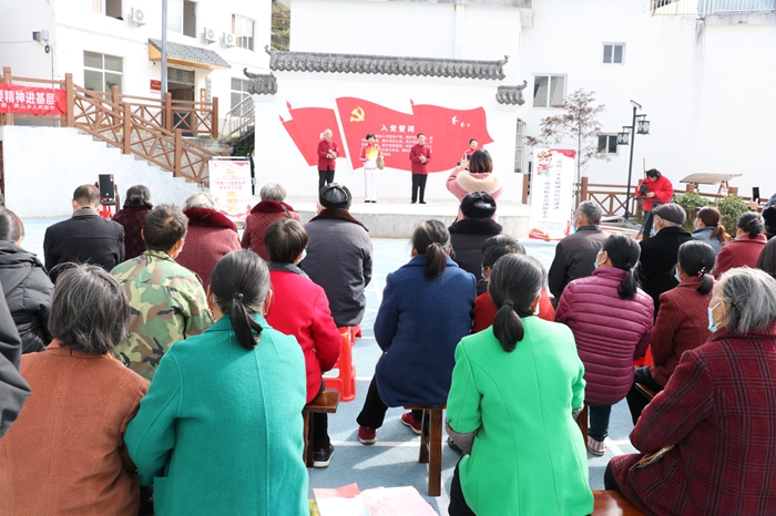 舞臺上,電吹管演奏《十送紅軍》,音樂快板《凱歌獻(xiàn)給黨的二十大》,越劇《唱支山歌給黨聽》,箶蘆絲演奏《映山紅》,雙簧《共產(chǎn)黨領(lǐng)導(dǎo)半嶺大變樣》、魔術(shù)表演等精彩節(jié)目輪番上演,抒發(fā)了對黨的忠誠、對新時代的贊美、對家鄉(xiāng)的熱愛。