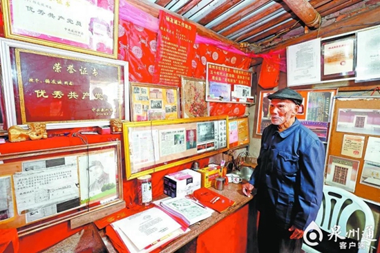 滿墻獎狀和新聞報道,見證楊友誠的初心和行動。泉州晚報 供圖