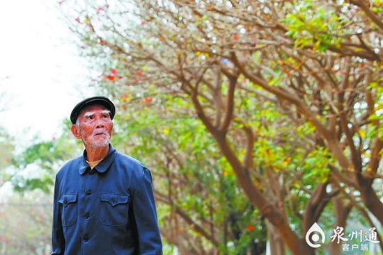 楊友誠望著這些刺桐樹,就像看著自己的孩子。泉州晚報 供圖