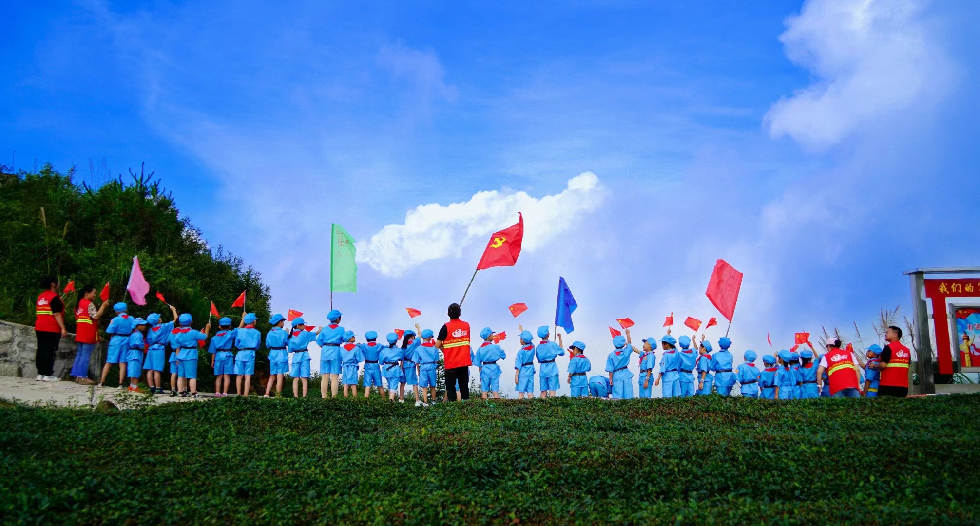 志愿服務(wù)帶領(lǐng)高山孩童“童心向黨”。(劉永伙攝)
