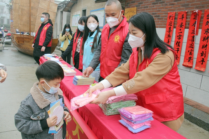 春聯(lián)、福字、宣傳手冊……志愿者們?yōu)槿罕娝透?、送法、送新風(fēng),用文化為幸福年添彩,以實(shí)際行動為群眾提供服務(wù)。