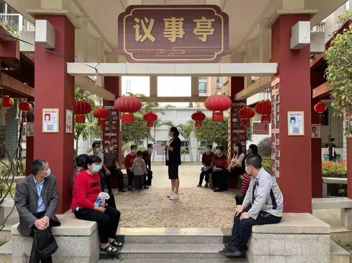 涵江區(qū)寶廈花園小區(qū)議事亭內(nèi)居民正在共商共議 涵江區(qū)委文明辦 供圖