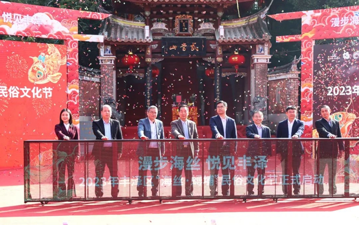 2月18日上午,2023年豐澤區(qū)“海絲·蟳埔”民俗文化節(jié)開幕式在泉州真武廟山門前廣場(chǎng)舉行,拉開了這場(chǎng)盛大、隆重、熱烈的文化活動(dòng)序幕。