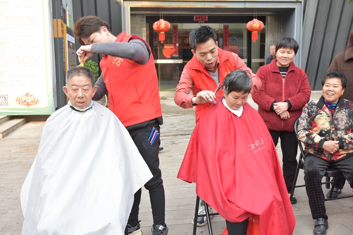 志愿者為市民義務(wù)理發(fā)(圖:甘露)