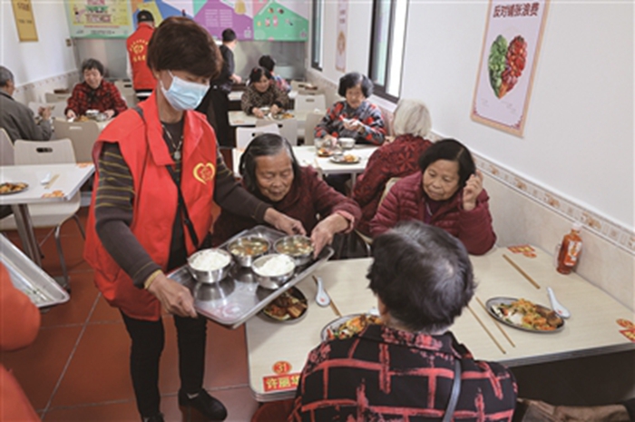 金埭村黨支部書記、村委會主任李少揚說,本村的長者食堂能正常運行,志愿者功不可沒。兩年多來,村“兩委”和老年協(xié)會大力提倡村民移風(fēng)易俗,簡辦婚喪喜事,并帶頭作表率,把節(jié)約下來的資金捐贈給長者食堂,得到村民和鄉(xiāng)賢們的大力支持。長者食堂成立以來,捐款芳名錄已經(jīng)記錄下了57萬元捐款人的名單?!耙粋€村子就是一個大家庭,幫村民把老人照顧好,年輕人打拼就少了后顧之憂?!崩钌贀P表示,長者食堂的志愿者,用溫暖的情懷和持之以恒的行動,奉獻給村里老人的幸?!笆场惫?,也為“老吾老以及人之老”的尊老愛老傳統(tǒng)美德寫下了新時代的暖心注腳。