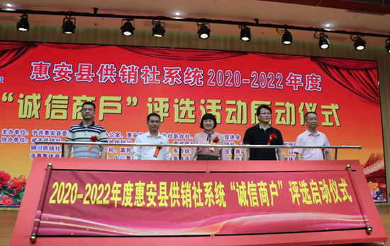 以信接人,天下信之。為大力培育和弘揚(yáng)社會(huì)主義核心價(jià)值觀,構(gòu)筑誠(chéng)實(shí)守信安全放心的消費(fèi)市場(chǎng)環(huán)境,全力爭(zhēng)創(chuàng)全國(guó)文明城市,日前,中共惠安縣委文明辦、惠安縣供銷合作社聯(lián)合社、惠安縣誠(chéng)信促進(jìn)會(huì)聯(lián)合舉辦2020-2022年度縣供銷社系統(tǒng)“誠(chéng)信商戶”評(píng)選活動(dòng)。