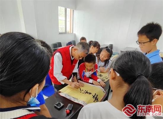 書(shū)法老師在課堂上示范書(shū)法書(shū)寫(xiě)(杏林社區(qū)新時(shí)代文明實(shí)踐站供圖)