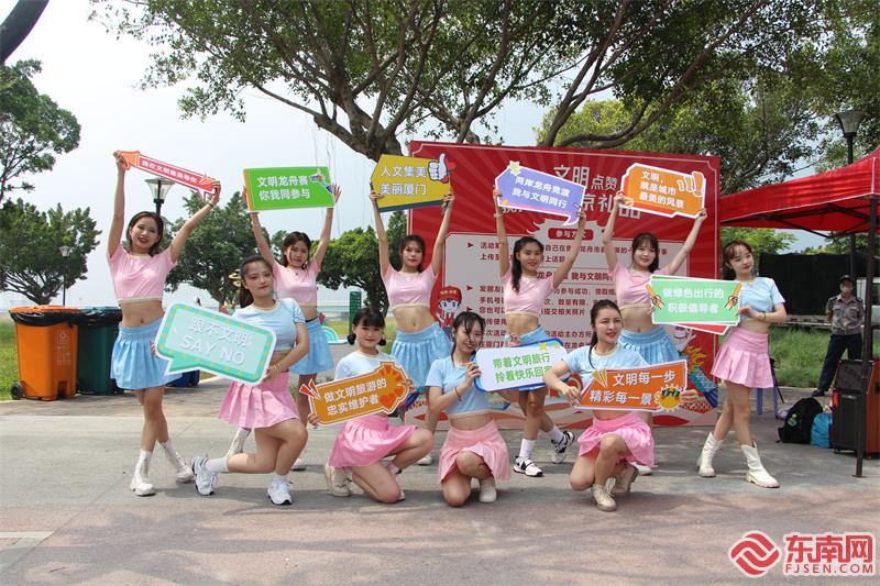 “文明,就是城市最美的風(fēng)景”“我在文明的集美等你”……龍舟池畔幾處人流量較大地點(diǎn),均設(shè)置了文明打卡點(diǎn),吸引游客合影拍照、主動(dòng)傳播,并通過《兩岸龍舟競(jìng)渡 我與文明同行》倡議書,引導(dǎo)市民游客“做文明秩序的自覺守護(hù)者、做自身安全的第一責(zé)任人、做綠色出行的積極倡導(dǎo)者、做垃圾分類的主動(dòng)踐行者”。