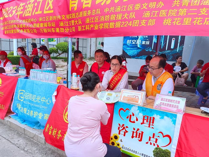 在各考點(diǎn)周邊,志愿者們?cè)O(shè)立愛心服務(wù)站,免費(fèi)為考生及家長們提供考試用具、醫(yī)藥急救、愛心贈(zèng)飲、均衡營食、信息咨詢等服務(wù),并布置了家長等候區(qū),為家長們提供精致周到的休息環(huán)境;為舒緩考生考前考后的心理壓力,涵江區(qū)心理健康輔導(dǎo)站組織專職心理健康老師,在考點(diǎn)周邊設(shè)置心理健康咨詢點(diǎn),引導(dǎo)考生調(diào)整心態(tài)、輕松赴考,并指導(dǎo)家長科學(xué)運(yùn)用心理學(xué)知識(shí)幫助考生緩解壓力;同時(shí),社區(qū)黨員志愿者也主動(dòng)加入到衛(wèi)生防疫、交通秩序、食品安全等各個(gè)崗位,全力保障廣大考生安全、有序、順利參考。