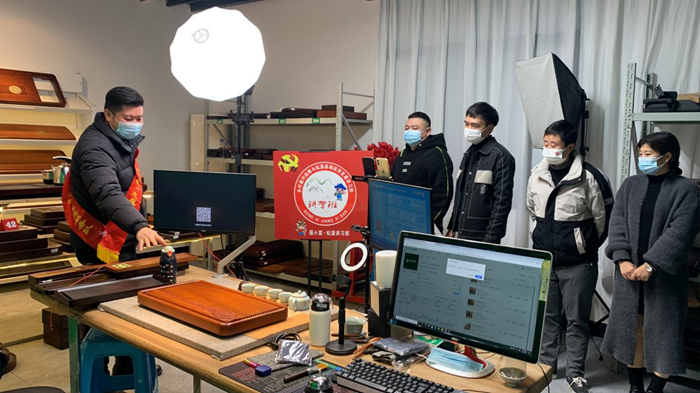 通過紅色先鋒直播間開展黨的二十大精神線上水美河?xùn)|“講習(xí)班”的云宣講。范鑫琳 祝曉峰 伍涵冰 攝