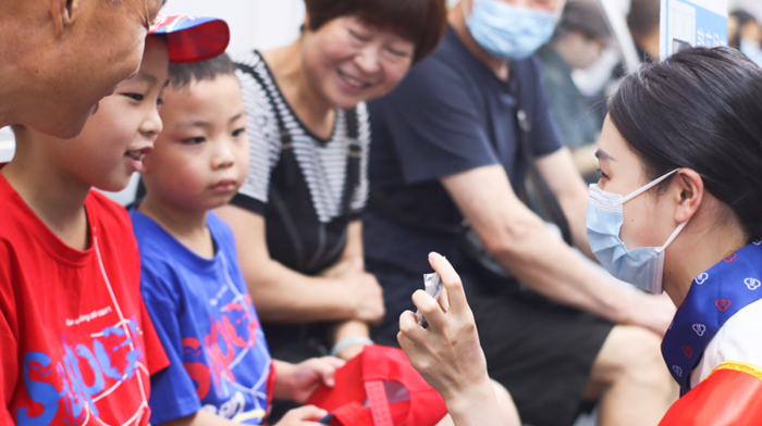 向乘客發(fā)放紀念小禮品(福州地鐵供圖)