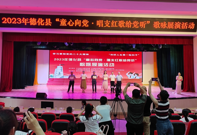 為深入學(xué)習(xí)貫徹黨的二十大精神,教育引導(dǎo)廣大未成年人傳承紅色基因,深化“扣好人生第一??圩印敝黝}教育實(shí)踐活動(dòng),6月12日下午,德化縣舉辦2023年“童心向黨·唱支紅歌給黨聽”歌詠展演活動(dòng),全縣共有14所學(xué)校參與本次活動(dòng)。