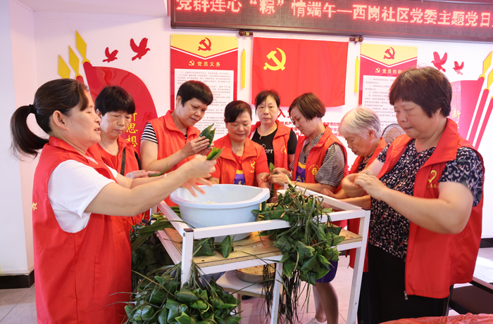 西崗社區(qū)的志愿者正忙著包粽子(徐華山 攝)