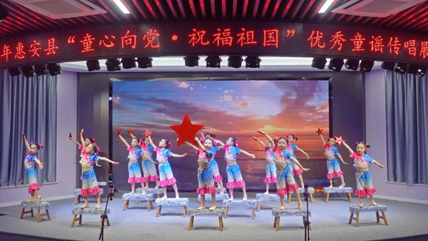 活動中,孩子們通過多樣的形式、新穎的構思傳遞童謠的魅力,唱響童心向黨、歌頌祖國、熱愛家鄉(xiāng)的主旋律?!蹲鎳鎳覑勰恪贰饵h是咱的好靠山》等一首首朗朗上口、旋律動聽的原創(chuàng)童謠滿載孩子們的愛國主義情懷,表達了對黨濃厚的熱愛之情;《惠安愈來變愈昳》《惠安韻·家國情》極富惠安本土特色,贏得了現(xiàn)場陣陣掌聲;《婀娜咱的惠安女》充分展示了新時代惠女精神,贊美了惠安女勤勞智慧和創(chuàng)新進取;《古樂南音》被孩子們用豐富的表現(xiàn)形式精彩演繹,美輪美奐、童趣十足。
