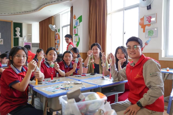 志愿者與小學(xué)生一起制作端午香囊。國網(wǎng)安溪縣供電公司供圖