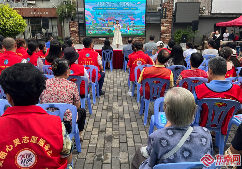 8月11日下午,“思明習(xí)慣 文明有禮”2023年思明區(qū)市民文明素養(yǎng)再提升“文明晾曬”專項(xiàng)宣傳教育行動在廈門市思明區(qū)鷺江老劇場文化公園舉行。