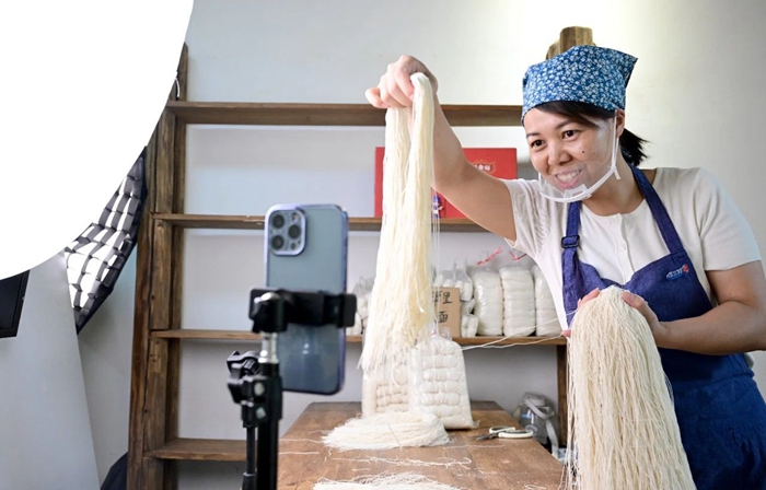 白天拍攝村內(nèi)風(fēng)光,晚上開展直播帶貨,姐妹倆為埔前帶來了一波又一波流量。經(jīng)姐妹倆拋磚引玉,也吸引來了更多的直播團(tuán)隊,紛紛與埔前線面聯(lián)名注冊產(chǎn)品品牌,將線面銷往全國各地。