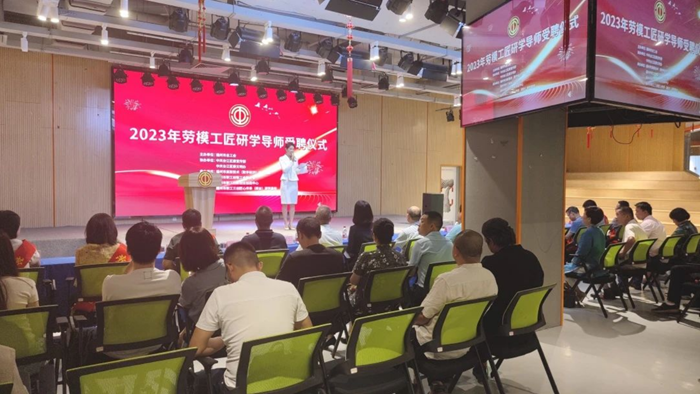 文明風(fēng)8月31日訊 為推進(jìn)新時(shí)代未成年人思想道德建設(shè),培養(yǎng)德智體美勞全面發(fā)展的社會(huì)主義接班人,8月28日,2023年勞模工匠研學(xué)導(dǎo)師受聘儀式在臺(tái)江區(qū)新時(shí)代文明實(shí)踐基地——福州市職工創(chuàng)新創(chuàng)業(yè)創(chuàng)造中心舉行。
