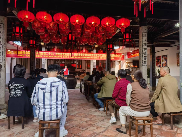 荔城區(qū)廣泛組織基層理論宣講愛好者、基層宣講團志愿者等,將黨的創(chuàng)新理論、好人好事等以贊句、快板、小品等群眾喜聞樂見的形式,借助“三堂”送到群眾身邊。邀請莆田“小紅團”志愿者到東陽陳氏宗祠等“三堂”為村民開展結(jié)合莆仙贊句的理論宣講活動20余場,邀請“荔體聲”宣講隊深入祠堂、廟堂、教堂開展理論宣講50余場,讓農(nóng)村大村小院、田間地頭都能聽到黨的創(chuàng)新理論。(荔城區(qū)委文明辦 柯巧玲)