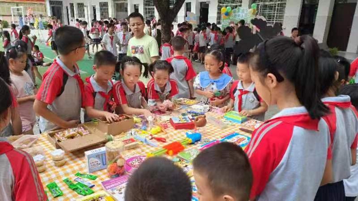 在省級文明校園五里街中心小學(xué),學(xué)生們早早就把自己的玩具、學(xué)習(xí)用品、書籍等商品擺到攤上,大家化身售貨員,各顯其能,想方設(shè)法招攬生意,有的扯著嗓子賣力吆喝,有的面帶微笑輕聲介紹,還有的手持商品流動推銷……學(xué)生家長則在一旁輔助,配合得相當(dāng)默契。小小顧客們在展臺前駐足、挑選、購買,愛心就在這付錢找零的一來一往中悄然傳遞。整個現(xiàn)場人山人海,歡笑聲、叫賣聲、吆喝聲、討價還價聲此起彼伏,匯聚成愛與奉獻的交響曲。