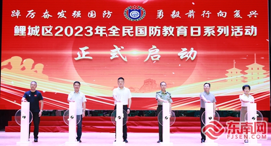 與會(huì)領(lǐng)導(dǎo)共同按下啟動(dòng)鍵,標(biāo)志著鯉城區(qū)2023年全民國(guó)防教育日系列活動(dòng)正式啟動(dòng)。鯉城區(qū)融媒體中心 供圖