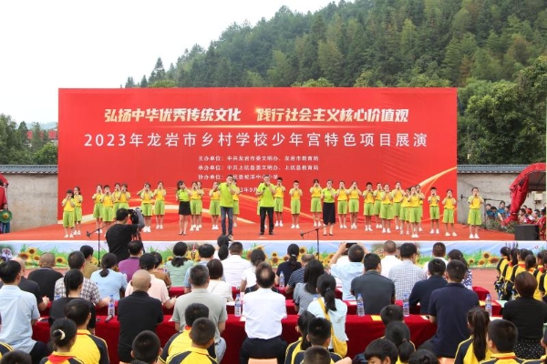 為進(jìn)一步推進(jìn)農(nóng)村未成年人思想道德建設(shè)工作,鞏固提升鄉(xiāng)村學(xué)校少年宮質(zhì)量水平,努力培養(yǎng)擔(dān)當(dāng)民族復(fù)興大任的時(shí)代新人,9月22日上午,2023年龍巖市“弘揚(yáng)中華優(yōu)秀傳統(tǒng)文化 踐行社會(huì)主義核心價(jià)值觀”暨鄉(xiāng)村學(xué)校少年宮特色項(xiàng)目展演活動(dòng)在龍巖市上杭縣蛟洋中心小學(xué)舉行。