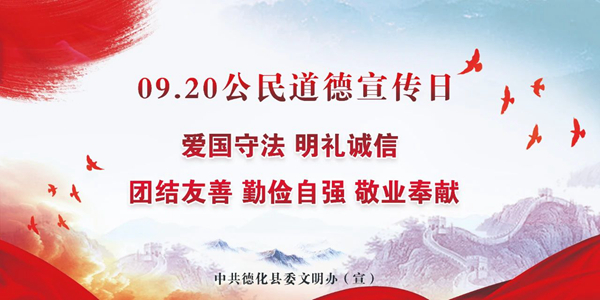 今年9月20日是全國(guó)第二十一個(gè)“公民道德宣傳日”,長(zhǎng)期以來,德化縣通過公民道德宣傳活動(dòng),廣泛動(dòng)員社會(huì)各界關(guān)心支持和參與道德建設(shè),使公民道德建設(shè)貼近實(shí)際、貼近生活、貼近群眾,增強(qiáng)針對(duì)性和實(shí)效性,促進(jìn)公民道德素質(zhì)和社會(huì)文明程度提高。