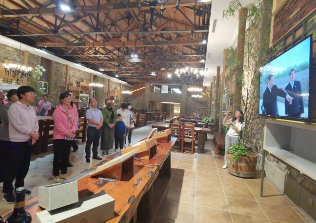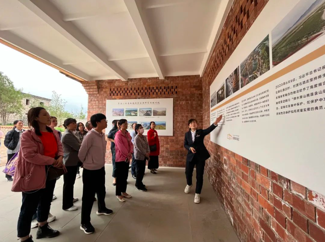 在“全國生態(tài)文化村”西夏區(qū)鎮(zhèn)北堡昊苑村,福建家庭代表們前往2020年習(xí)近平總書記在寧夏考察時來到的葡萄種植園,深刻感悟習(xí)近平新時代中國特色社會主義思想所蘊(yùn)含的科學(xué)方法、領(lǐng)導(dǎo)智慧和品格力量。通過聆聽講解介紹,代表們了解到20多年前昊苑村還是一片荒灘,遍布砂石開采后遺留的大坑,“風(fēng)吹石頭跑,地上不長草”是當(dāng)時的真實寫照;而如今葡萄遍地、酒莊林立,不但實現(xiàn)從“漫天黃沙”到“美麗鄉(xiāng)村”的逆襲,還帶動了全村經(jīng)濟(jì),生態(tài)修復(fù)的“綠色蝶變”成就了葡萄酒行業(yè)的“紫色夢想”。