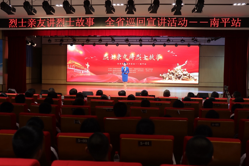 此次宣講活動由省委宣傳部、省退役軍人事務廳、省軍區(qū)政治工作局、福建廣電網(wǎng)絡集團聯(lián)合主辦,福建省烈士紀念設施保護中心、南平市退役軍人事務局、南平市教育局等單位承辦。省退役軍人事務廳黨組成員、副廳長蔡靜南和省、市有關部門領導出席活動。南平一中師生、烈士親友、群眾代表等400余人現(xiàn)場聆聽。
