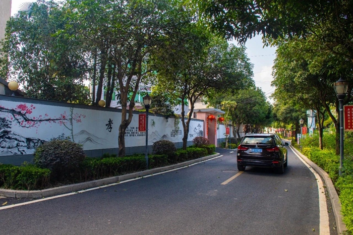 “清新、靚麗、整潔”是后福村給人留下的第一印象,干凈寬敞的村道一字鋪開,顏色風格各異的民房錯落有致,整潔的庭院中綠植生長至墻外,為村道增添靚麗風景。
