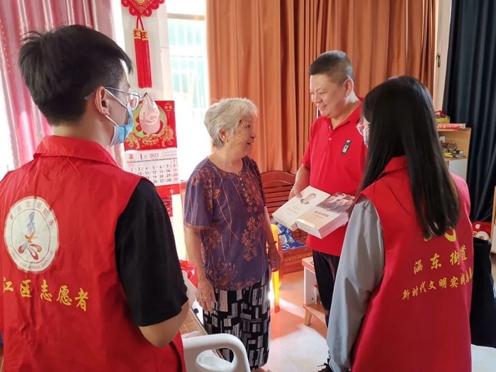 關(guān)心社區(qū)老黨員(右2為徐旭) 涵江區(qū)委文明辦 供圖