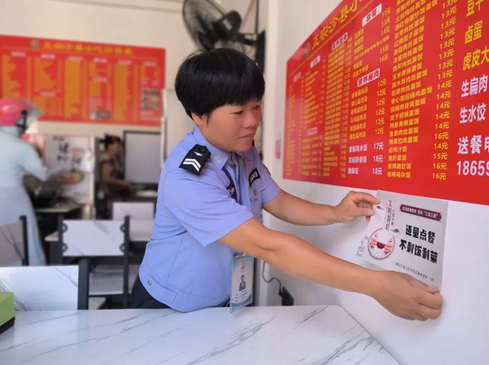 張貼“光盤行動、杜絕浪費”宣傳單 涵江區(qū)委文明辦 供圖