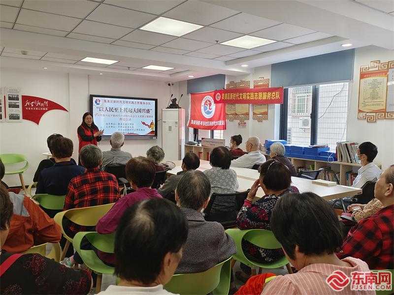 深學(xué)細(xì)悟新思想,凝心聚力譜新篇。11月15日,寧海社區(qū)新時(shí)代文明實(shí)踐站邀請(qǐng)廈門(mén)市婦女聯(lián)合會(huì)講師王勤芳開(kāi)展《新時(shí)代 新思想 新征程——學(xué)習(xí)貫徹習(xí)近平新時(shí)代中國(guó)特色社會(huì)主義思想主題教育》理論宣講課程,通過(guò)線(xiàn)上直播、線(xiàn)下宣講相結(jié)合形式拓寬學(xué)習(xí)受眾面,并以“跨時(shí)空的對(duì)話(huà)”小視頻,引發(fā)黨員群眾情感共鳴,增進(jìn)思想認(rèn)同。