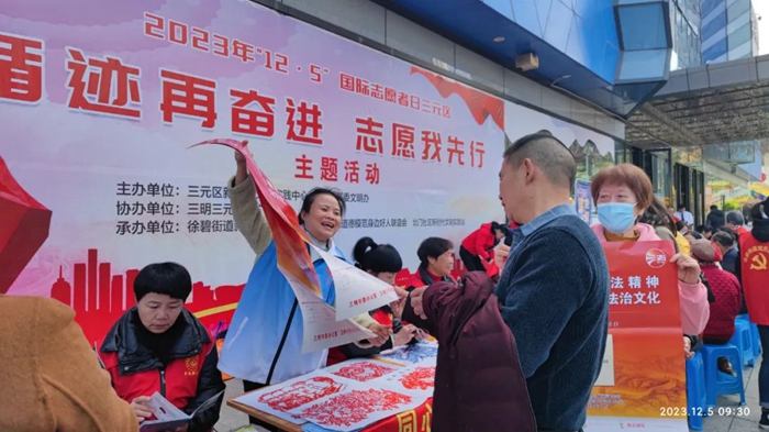 12月5日,三明市委文明辦、明溪縣新時(shí)代文明實(shí)踐中心聯(lián)合舉辦三明市暨明溪縣“循跡再奮進(jìn)·志愿我先行”“12·5”國際志愿者日主題活動?;顒蝇F(xiàn)場,設(shè)置宣傳臺、發(fā)放宣傳資料、開展法律咨詢等形式向群眾普及政策法規(guī)、健康養(yǎng)生、疾病預(yù)防、防災(zāi)減災(zāi)等知識?,F(xiàn)場開設(shè)盲人按摩、義縫、義剪等便民服務(wù),同時(shí)開展《志愿者之歌》大合唱、垃圾分類主題快板、志愿服務(wù)主題詩朗誦等文藝表演,本次活動共服務(wù)群眾5000余人。