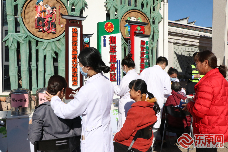 志愿者給過往群眾提供便民服務(wù)。東南網(wǎng)記者 陳玲匯 攝