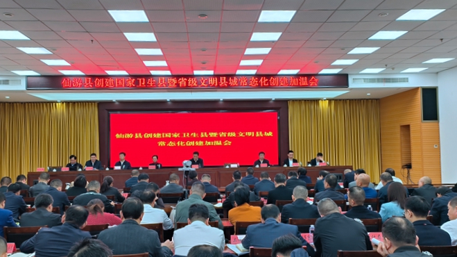 文明風12月12日訊 近日,仙游縣召開創(chuàng)建國家衛(wèi)生縣暨省級文明縣城常態(tài)化創(chuàng)建加溫會。仙游縣委書記吳文恩主持會議,縣四套班子分管領導出席。