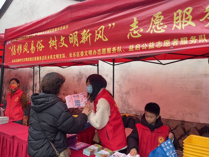 活動(dòng)現(xiàn)場(chǎng),志愿者宣傳移風(fēng)易俗(供圖:長(zhǎng)樂區(qū)融媒體中心)