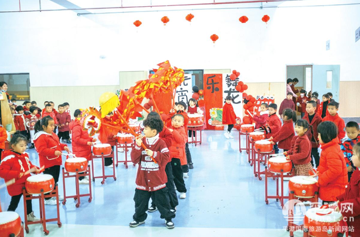 同樣平潭西航第一幼兒園也開展了慶元宵游園活動?!敖裉煳腋杏X好熱鬧,舞龍、猜燈謎、許愿等樣樣都有?!?月23日,平潭西航第一幼兒園里茶香悠悠,笑聲陣陣,全園師生身穿喜慶服飾,學(xué)點(diǎn)茶,寫福字,品美食,做游戲,看節(jié)目,共同體驗(yàn)“尋龍記”元宵游園會之樂。