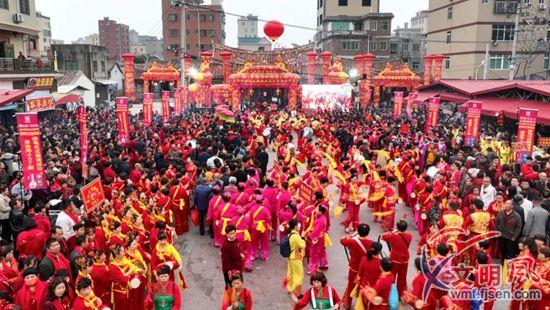 竹壩南洋風(fēng)情度假區(qū),“上元納福 長(zhǎng)樂未央”2024年同安竹壩元宵藝術(shù)游園會(huì)吸引上千人圍觀。(同安區(qū)委文明辦供圖)