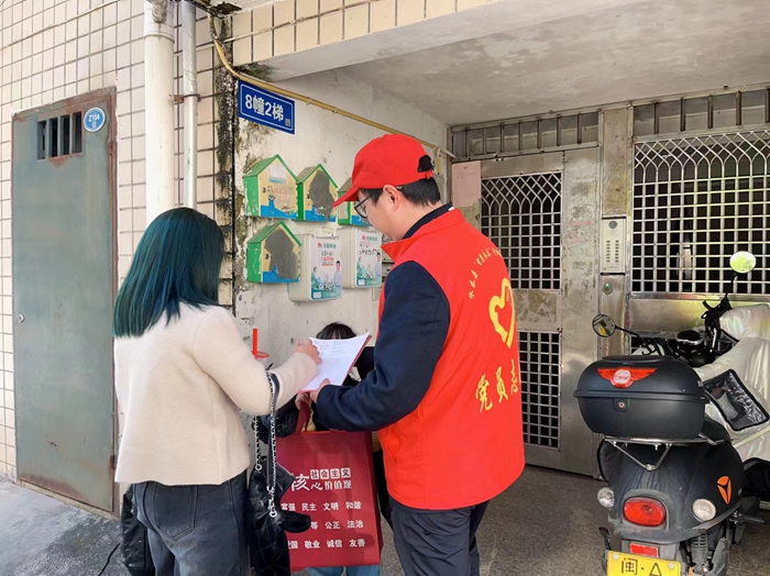 “紅色樓道長(zhǎng)”通過入戶問卷調(diào)查的方式收集群眾對(duì)于創(chuàng)建全國(guó)文明城市的看法和建議