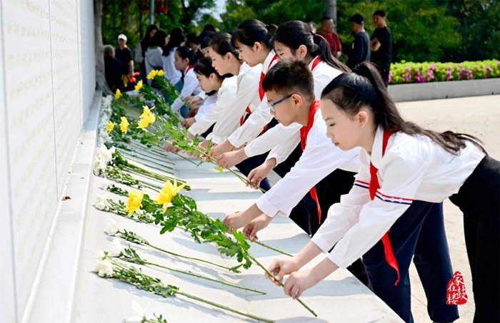 茶園山小學學生敬獻鮮花(區(qū)委宣傳部供圖)