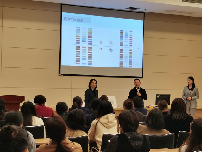 活動伊始,CMB國際形象色彩顧問朱彬茹老師和她的團(tuán)隊(duì)成員結(jié)合窗口工作實(shí)際,靈活運(yùn)用知識講授和現(xiàn)場互動相結(jié)合的方式,從中西文化對比、個(gè)人形象色彩分析、著裝搭配的價(jià)值與意義等方面,全面、系統(tǒng)、規(guī)范地講述了政務(wù)禮儀和個(gè)人形象的關(guān)系。在互動問答、現(xiàn)場展示、小組研討環(huán)節(jié),4位授課老師結(jié)合學(xué)員自身特點(diǎn),深入淺出、生動形象地講解了個(gè)人皮膚色與著裝色彩搭配的原則與禁忌,進(jìn)一步提高了培訓(xùn)的實(shí)操性,也通過規(guī)范著裝禮儀提升政務(wù)服務(wù)水平、文明素養(yǎng)。