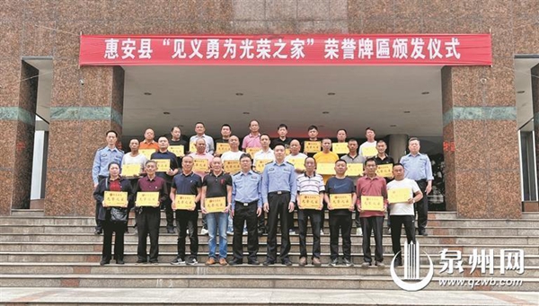 近日,惠安縣“見義勇為光榮之家”榮譽(yù)牌匾頒發(fā)儀式在縣公安局舉行,全縣28名見義勇為代表參加頒發(fā)儀式。