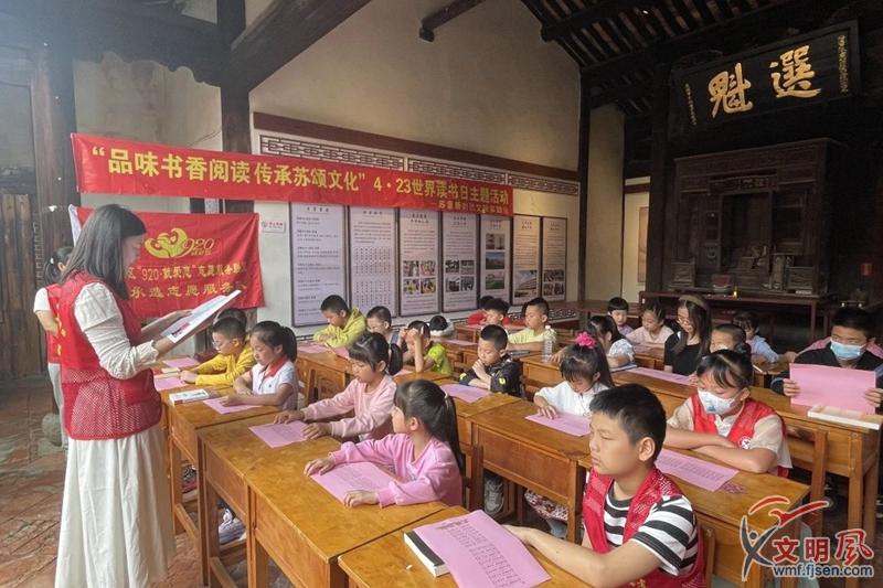 除了閱讀書本,志愿者還帶領小朋友們現場參觀了蘇厝村史館。村史館集中展示了“蘆山蘇氏,藍田支脈”“崇文重教,育才興學”“禮儀風行,習俗醇厚”“美麗蘇厝,譜寫新篇”等4大塊內容,引導孩子們向古代先賢學習,做新時代的好少年。