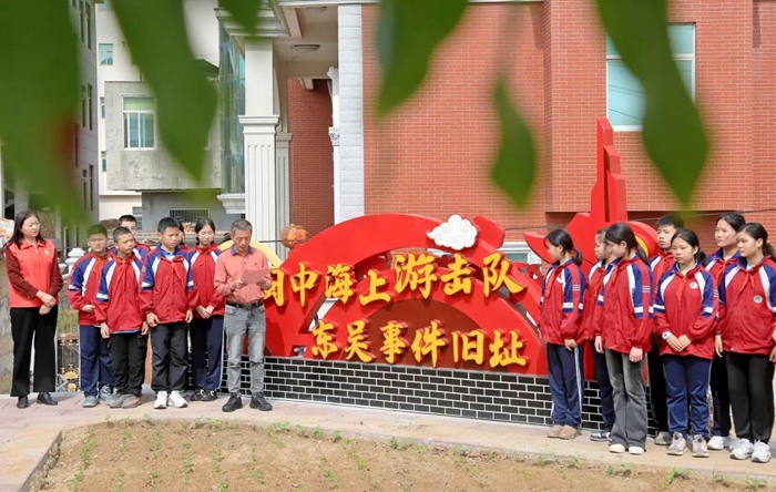 學(xué)生們?cè)谛聲r(shí)代文明實(shí)踐點(diǎn)接受愛國(guó)主義教育