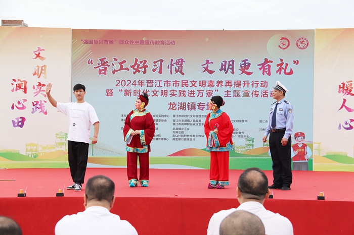 文明風(fēng)5月14日訊 為進(jìn)一步提升市民文明習(xí)慣,深化新時(shí)代文明實(shí)踐中心建設(shè),5月13日下午,晉江市在龍湖鎮(zhèn)施氏家風(fēng)家訓(xùn)館廣場(chǎng)舉行“晉江好習(xí)慣 文明更有禮”2024年晉江市市民文明素養(yǎng)再提升行動(dòng)啟動(dòng)儀式。